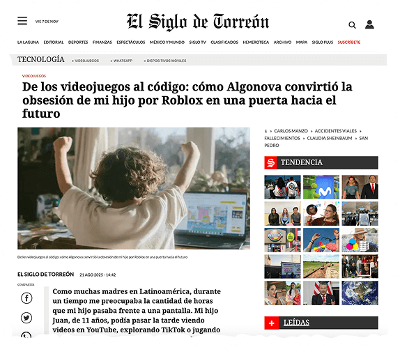 Los medios de toda Latinoamérica destacan el enfoque de Algonova, un aprendizaje que inspira a los niños(as) a crear.